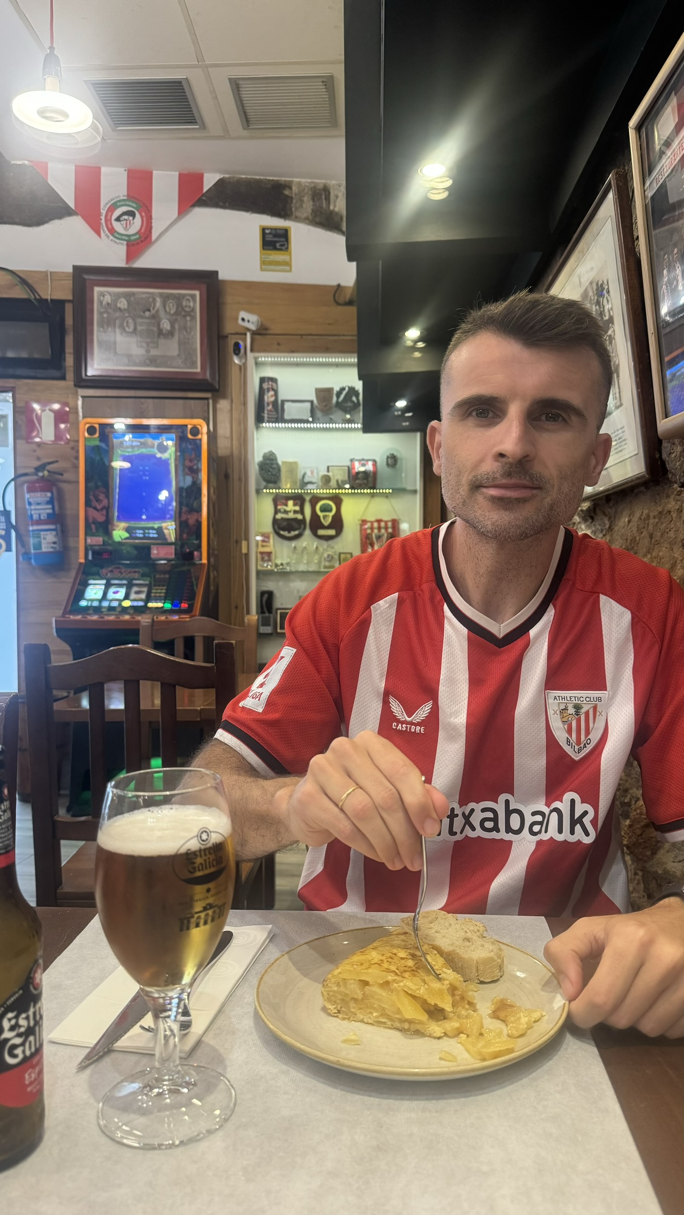 Pregunté si el bar tenía algo que ver con el equipo actual, el Real Unión de Irún, pero me dijeron que actualmente no pero en el pasado sí, ya que era como una pequeña sede del equipo. Este equipo fue uno de los diez equipos fundadores de la Liga Española y ha levantado cuatro copas, entre otros hitos.